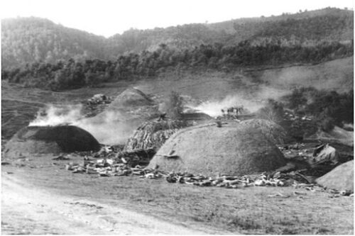 Oglaring experienced its greatest boom in the 19th century, especially around 1848 in Gorenjska, in Kočevské Rog and other parts of Slovenia. With the development of more modern methods of iron and transport, coal mining has decreased. By 1930, the annual production of charcoal, which was mainly intended for export, fell to 28-30 thousand tons annually. After the Second World War, coal mining remained present in Dolenjsko and some other areas, where it has been preserved to this day as a specialty.